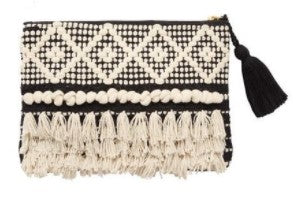 Handloomed case features canvas backing, cotton lining and tassel zipper pull.