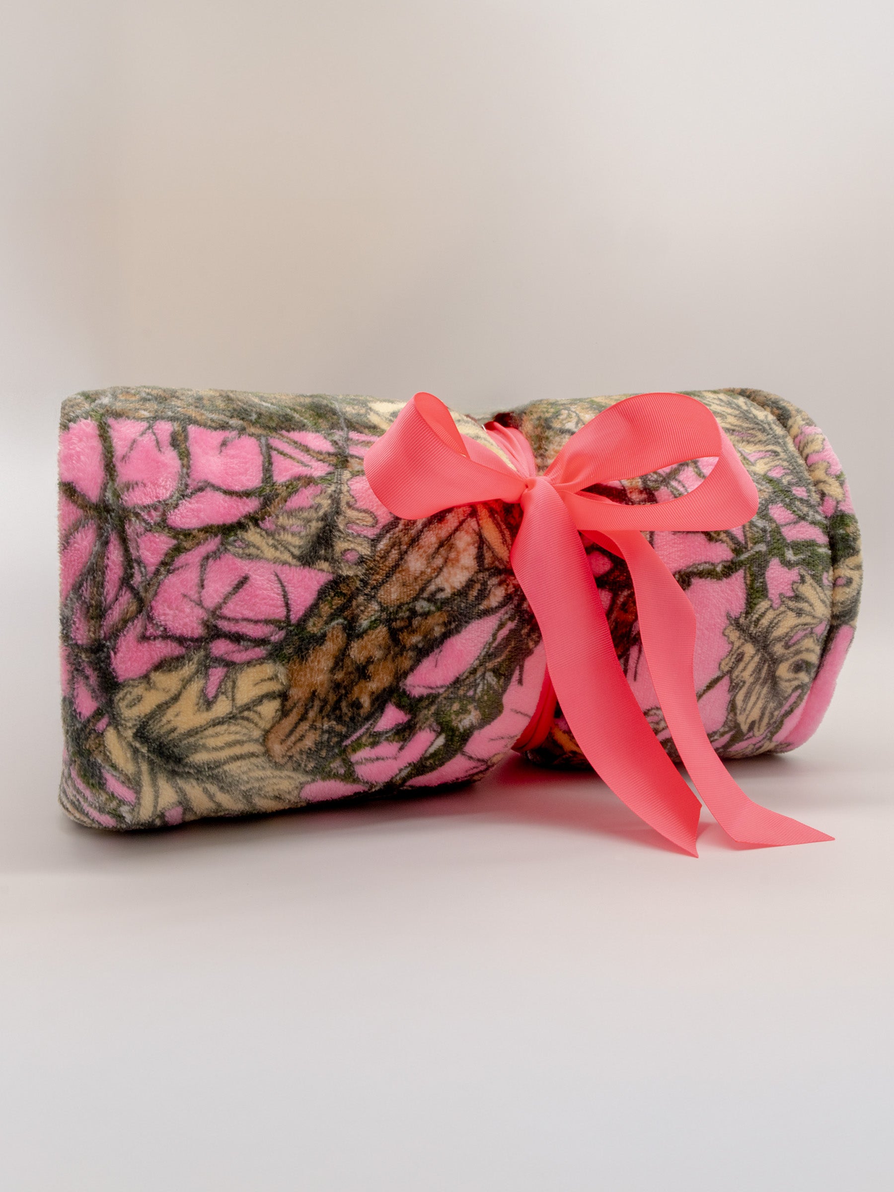 Stay warm and cozy this season with the Simply soft blanket featuring one printed and one solid side.