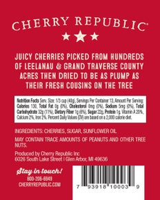 Big, plump, and juicy. Our dried cherries are the best available. We start with the best Montmorency Tart Cherries of the year and use our unique drying process to ensure they are beautiful, great tasting, and healthy. The versatility of dried cherries makes them particularly good for purchase in bulk. An easy substitute for raisins in any recipe, they are also a healthy alternative to candy in kids' lunch boxes, a great addition to stuffings for roasts, easily reconstituted and substituted for fresh cherries, and that extra something special in trail mixes, on relish trays, or in homemade chutneys.