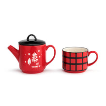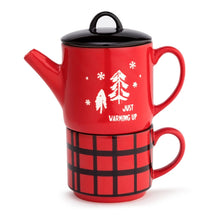 The cute Cozy Tea for One is the perfect thoughtful piece to gift to any tea lover this season. This festive two-piece ceramic set includes a miniature teapot and matching mug. The teapot is designed with a festive red hue and whimsical wintery accents with sentiments that read, "Just Warming Up." The mug features a classic stackable shape with a bold red and black plaid pattern for a fun seasonal feel. A part of our Holly Lodge Collection, this piece is part of a lineup of home goods that capture the spirit of a cozy cabin to make our time spent together feel extra homey with warm plaid patterns and wood accents to inspire a rustically welcome environment. Carefully packaged in a beautiful box, this piece is ideal for gifting to anyone on your list who is a tea lover or coffee lover.