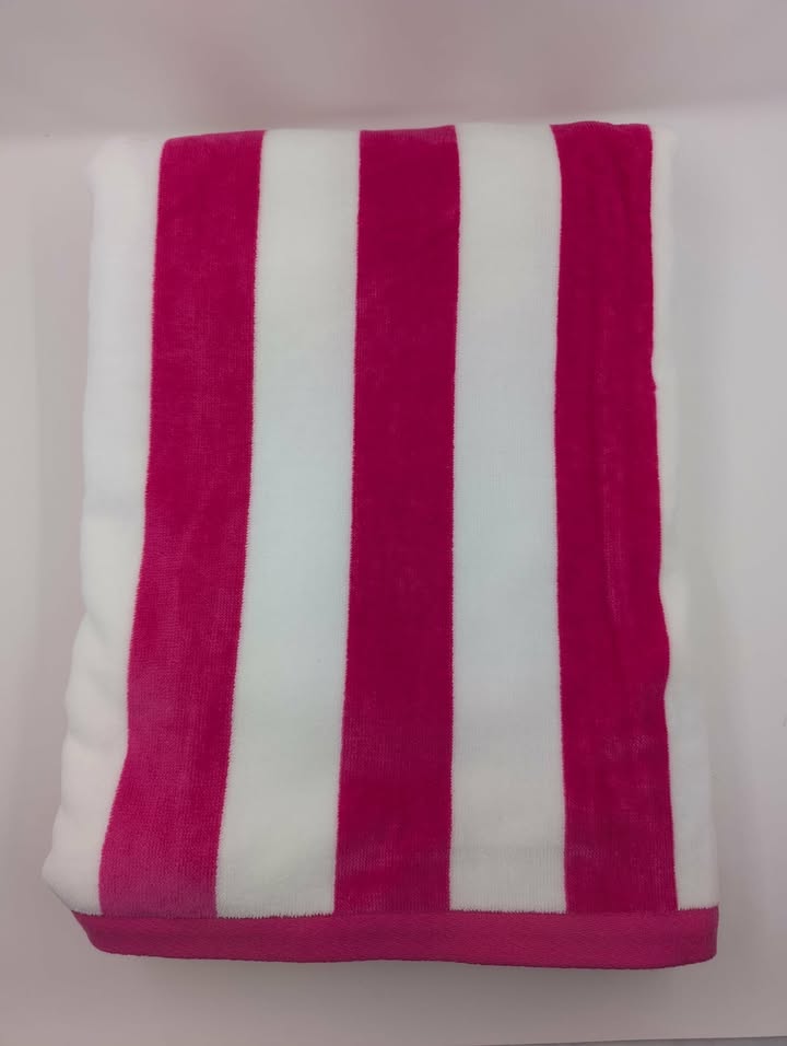 Custom Embroidered Towel -Pink White Stripe