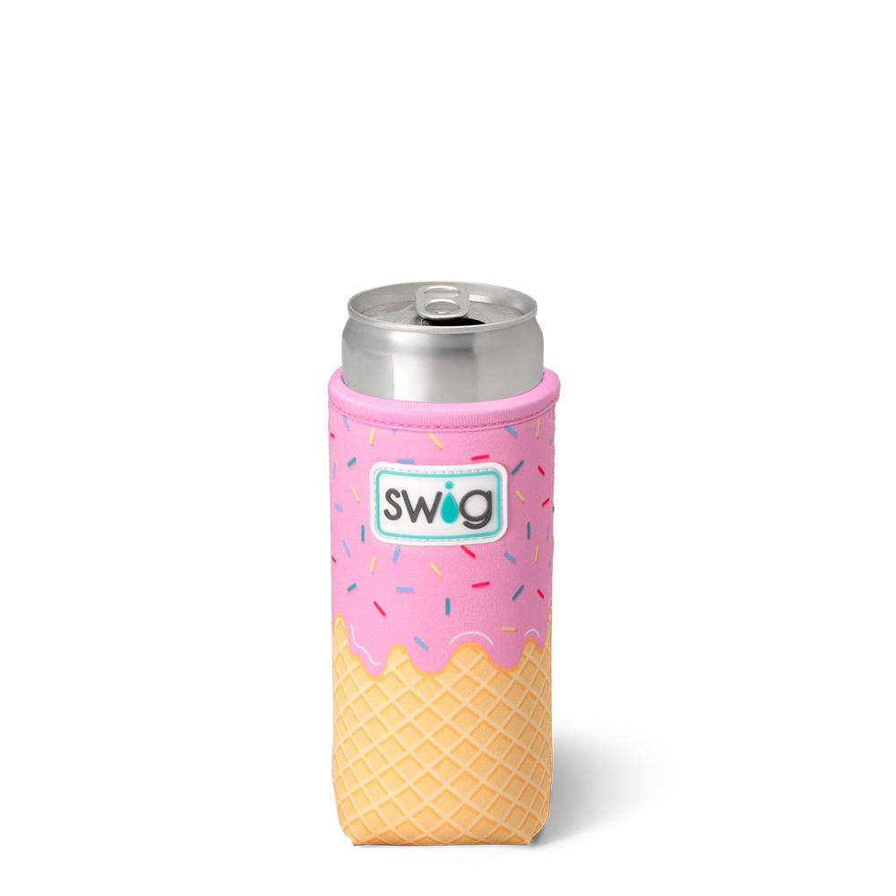 Cool drinks, dry hands! 🍺 We all scream for ice cream! This design serves up a sweet treat with a waffle cone and a scoop of dripping pink ice cream coated in rainbow sprinkles.🍦