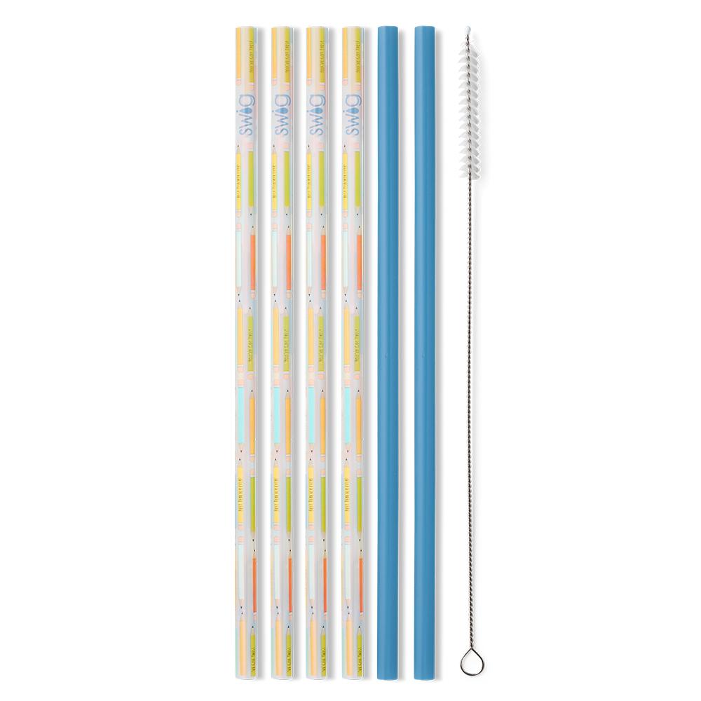 • 4 printed straws, 2 solid color straws, and 1 cleaning brush