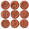 Each time before using, season your new cookie stamps by brushing them with cooking oil. Do not use butter to season stamps. Cookie dough should be rolled into walnut size balls. Stamp and flatten to the desired thickness with cookie stamp. Sticking may be minimized by dusting your cookie stamp with flour.