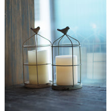 Let this pair of sweet metal birds welcome you each morning as they perch atop their candleholders. Each candleholder features an open cage design on a circular base, all crafted from metal that has been gently distressed for a look of loved use. Place any two-inch candle inside for a warm touch to your sunroom or breakfast nook.