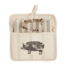 Take your dishes from farm to the table with this Pig Pot Holder and Towel Set. The three piece set comes with a cotton pot holder. The pot holder features a pig image. The pot holder also comes with a cotton hand towel. The set also comes with a pig metal cookie cutter.