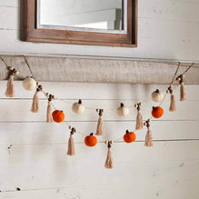 Decorate your home with our orange pumpkin tassel garland this fall. The garland features paulownia wood beads, tassels and felt pumpkins on twine. The pumpkins feature orange pumpkins in between the hanging tassels. The garland would look great on your fireplace mantle.