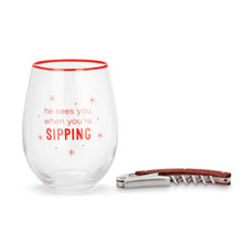 Prepare for Christmas with the When You're Sipping Wine Glass & Corkscrew Set from the Uncork & Unwind Holiday collection. Thoughtfully crafted with paperboard, this red gift set is the ultimate surprise the homebody will adore!